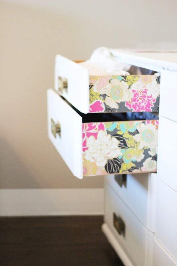 Наскучила старая мебель? Шкаф и комод приобрели потёртый вид? Исправить это легко при помощи обоев. Если вы не планируете в дальнейшем покрывать изделие лаком, то подойдут и бумажные, и виниловые обои. В противном случае от виниловых обоев придётся отказаться, так как они могут раствориться под действием лака. И ещё стоит помнить, что при лакировании цвет обоев изменится и станет темнее.